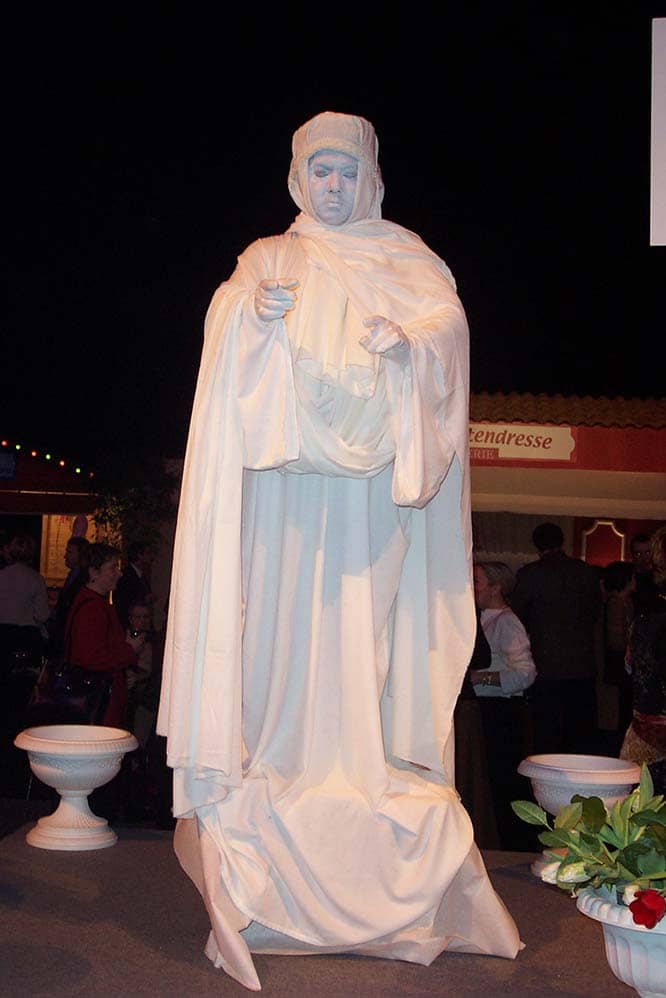 Que ce soit pour un événement ou une animation en pleine rue, ou encore un événement privé, les statues humaines sont un moyen agréable et efficace pour faire grande impression ! Quoi de mieux qu’inviter vos convives dans un lieu définit par vos soins et de voir à l’entrée, un tableau de statues humaines en lien avec votre thème !